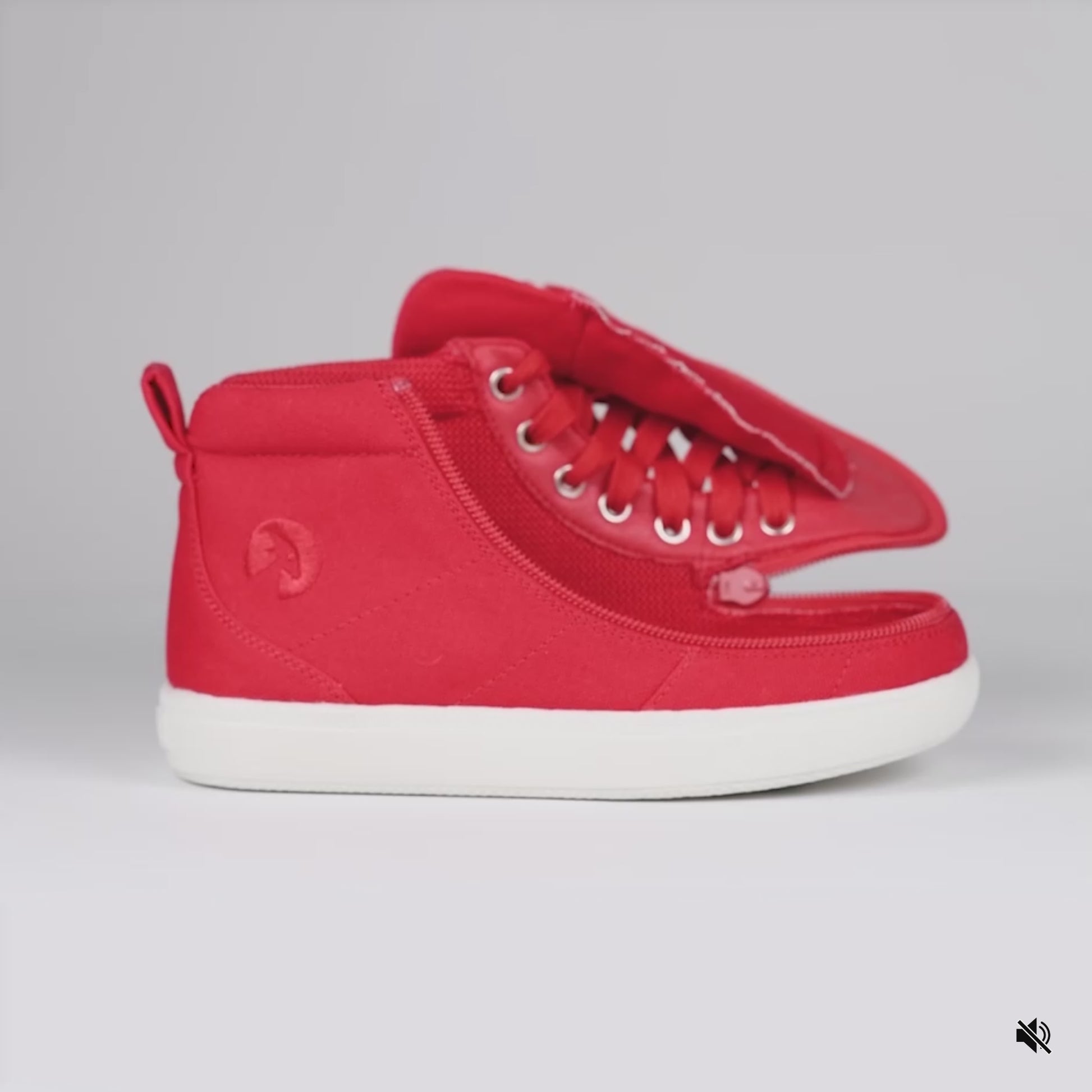 The Red BILLY Classic D|R II High Top AFO-friendly shoes consist of three widths: Medium (MDR), Wide (WDR), and Extra-Wide (XDR). The laces on these shoes are functional for an adjustable fit. The thick knit polyester fabric upper lining adds durability for increased tear resistance. The full-wrap zipper closure allows for unobstructed fun and easy entry into the shoe. The insole board and outsole rubber compound helps withstand toe and heel striking. And the two removable insoles (3mm each) provides adjustable depth for custom orthotics.