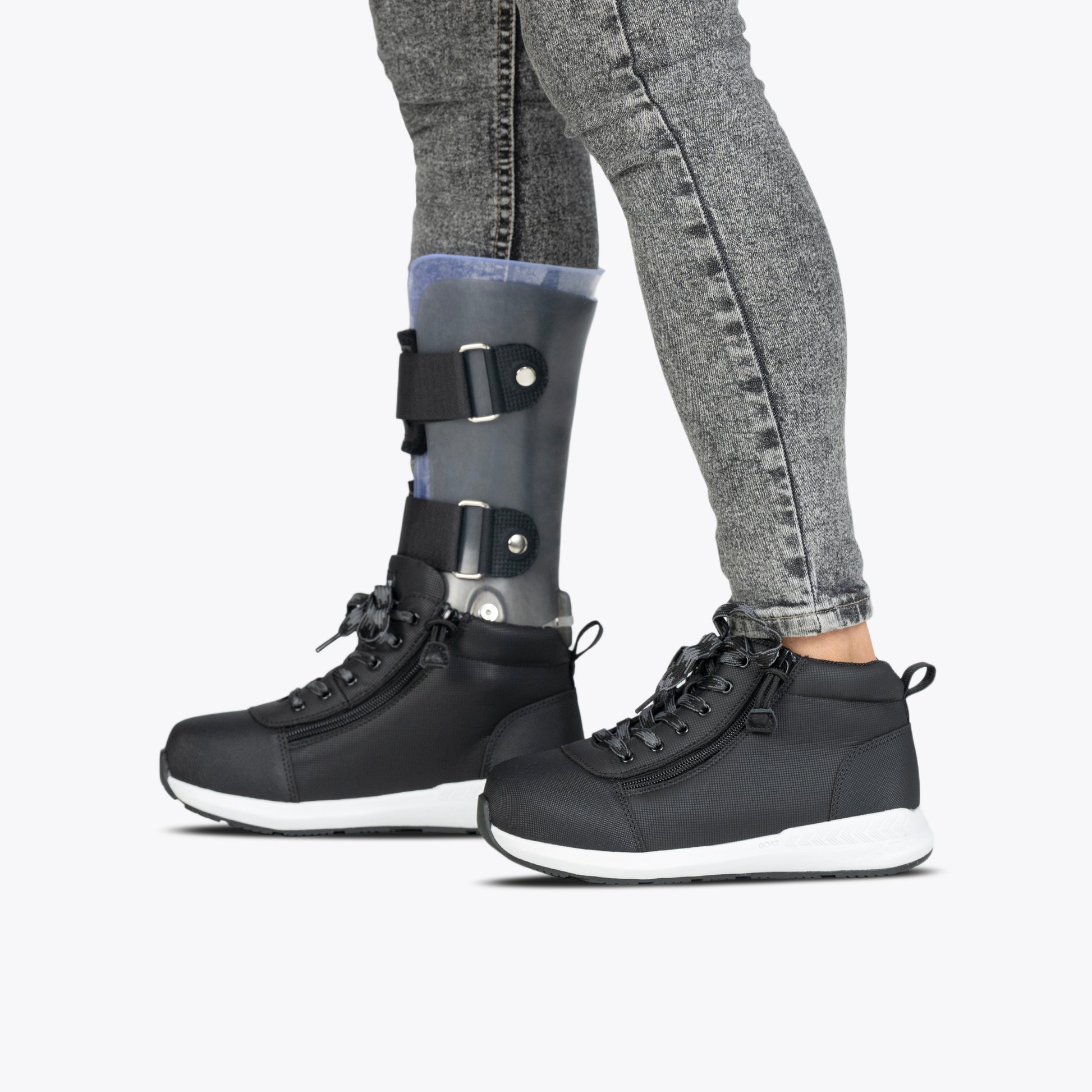 Built for durability and designed for convenience, the Rugged Black BILLY Goat DZ High delivers on both with style. With a faux leather upper, these AFO-friendly shoes offer easy on and off with two zippers—one on the lateral side and one on the medial side. Combining support with a rugged look, they’re the perfect solution for lasting wear and everyday functionality.