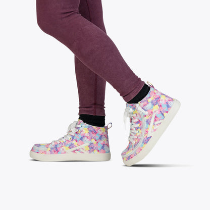 The colorful pattern of these Tropical BILLY CS High Top shoes brings a fresh, modern twist to your classic high top sneaker. Designed with functional laces for a custom fit, removable insoles for added depth, and BILLY's signature wraparound zipper for effortless convenience, these shoes combine standout style with everyday ease.