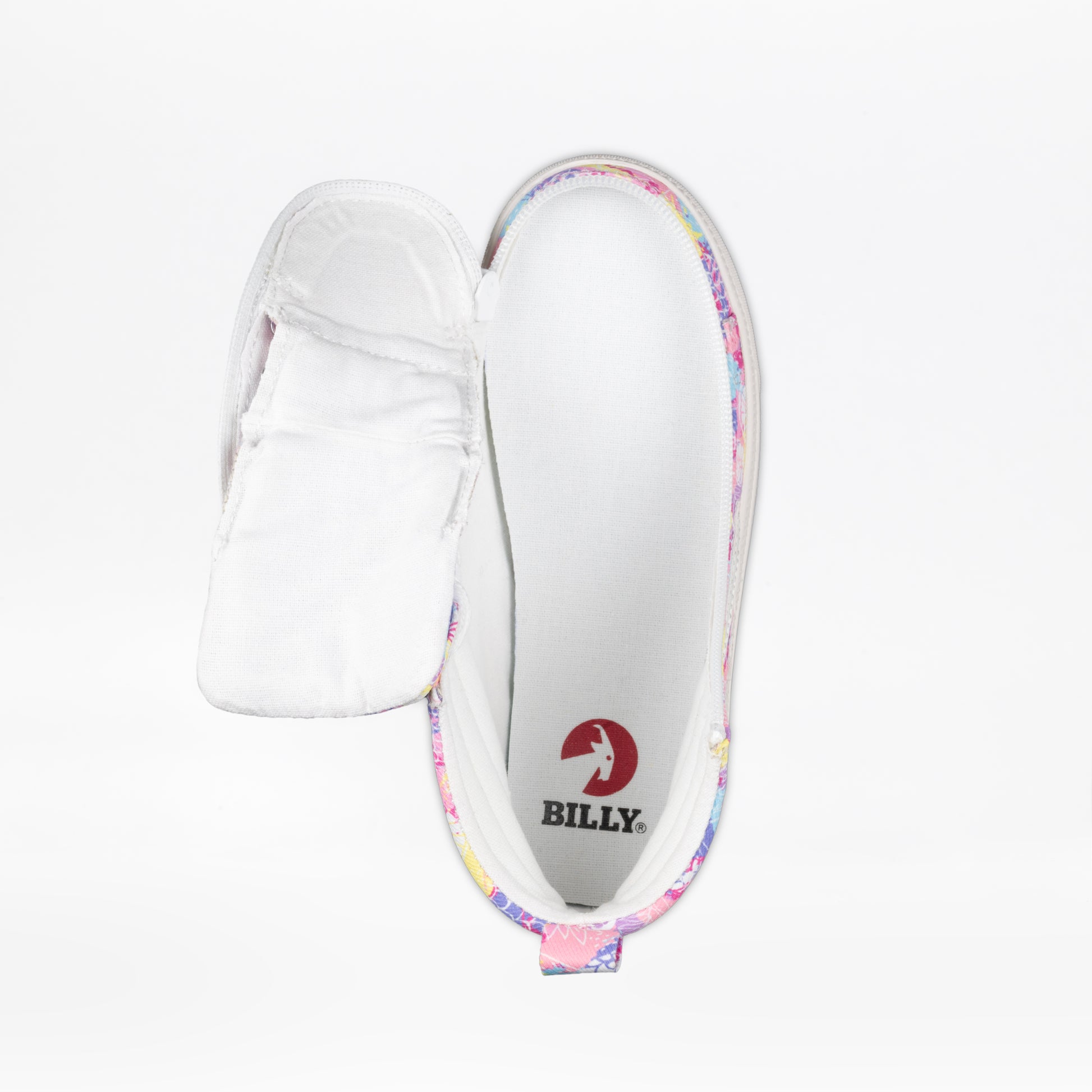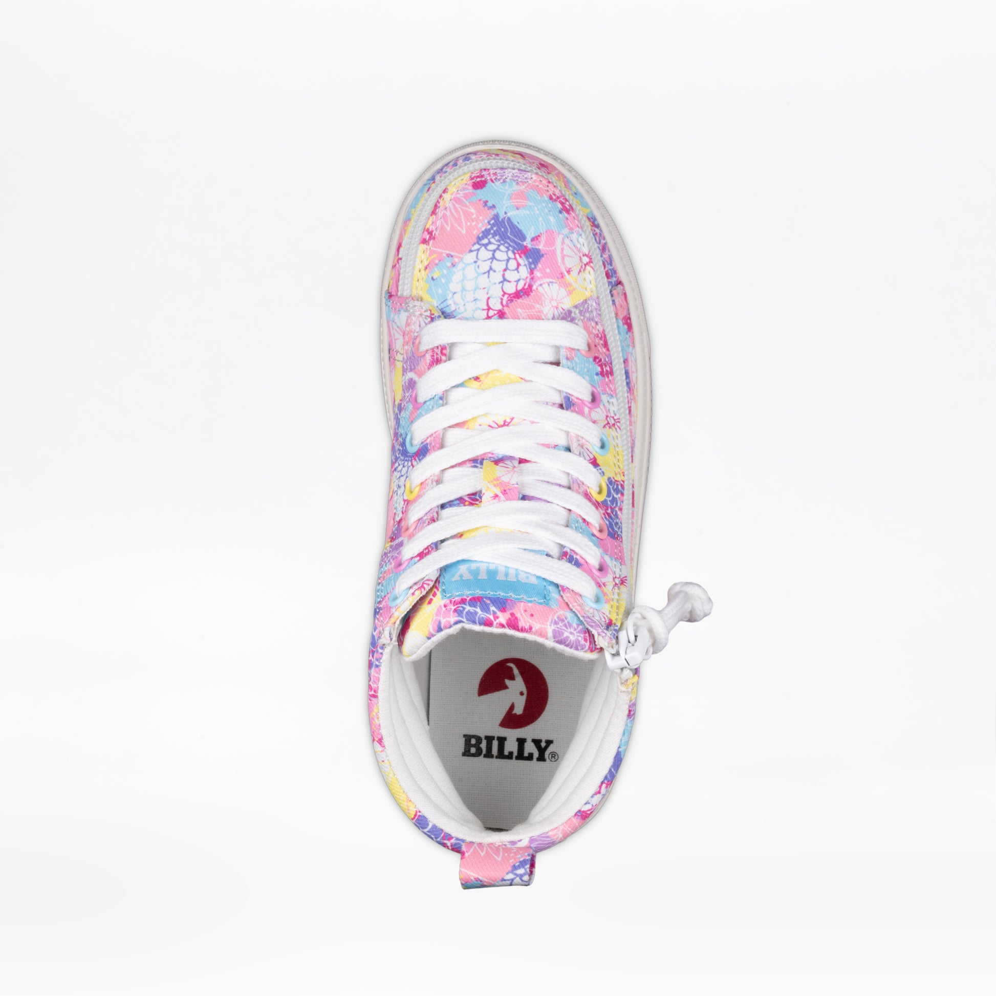 The colorful pattern of these Tropical BILLY CS High Top shoes brings a fresh, modern twist to your classic high top sneaker. Designed with functional laces for a custom fit, removable insoles for added depth, and BILLY's signature wraparound zipper for effortless convenience, these shoes combine standout style with everyday ease.